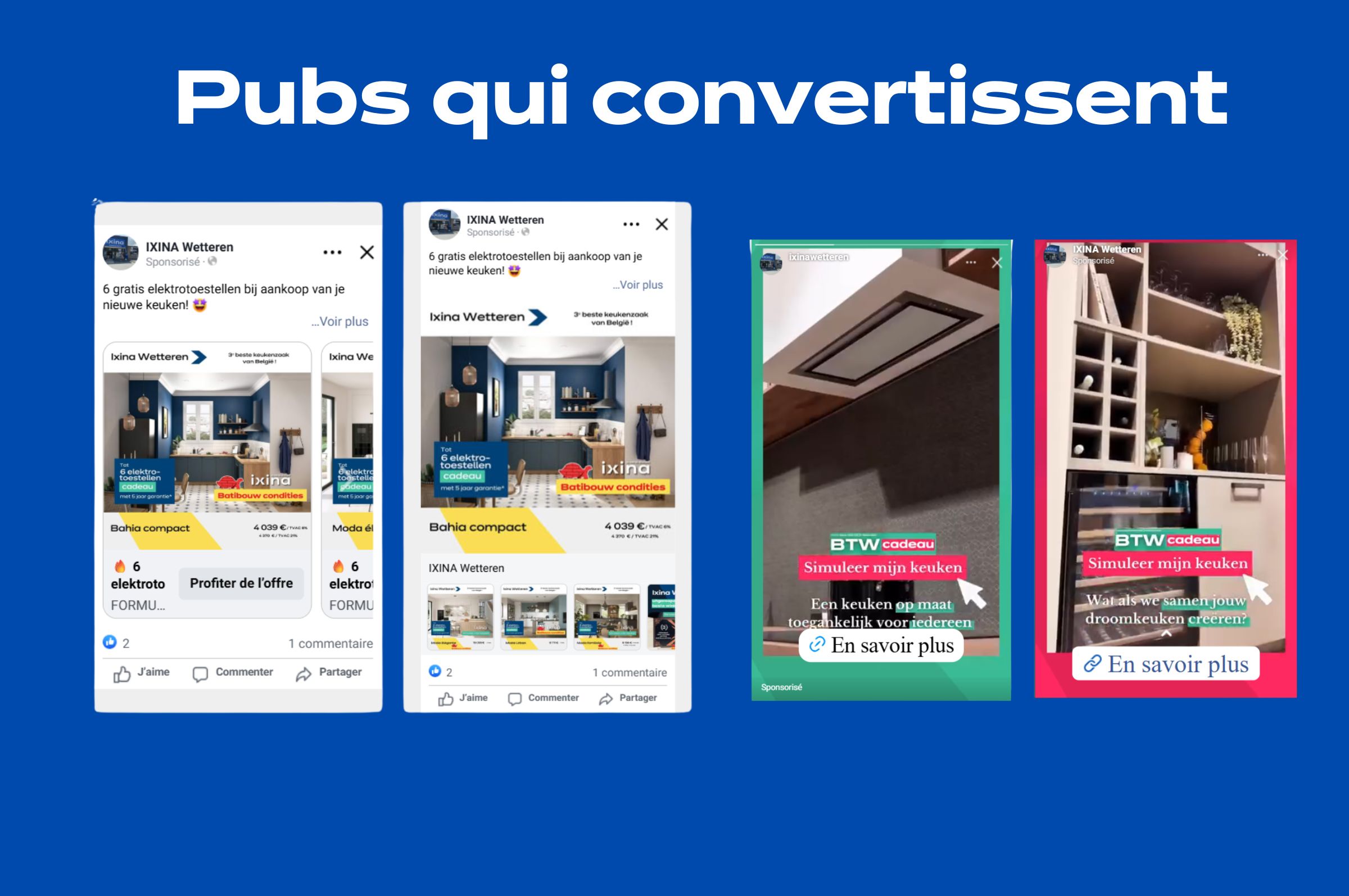 Pour Ixina, le défi était clair : attirer les bons clients, au bon moment, dans le bon magasin. Nous avons conçu une stratégie complète mêlant audience testing, contenus impactants et campagnes Meta Ads performantes, afin de générer un flux constant de rendez-vous en showroom.
